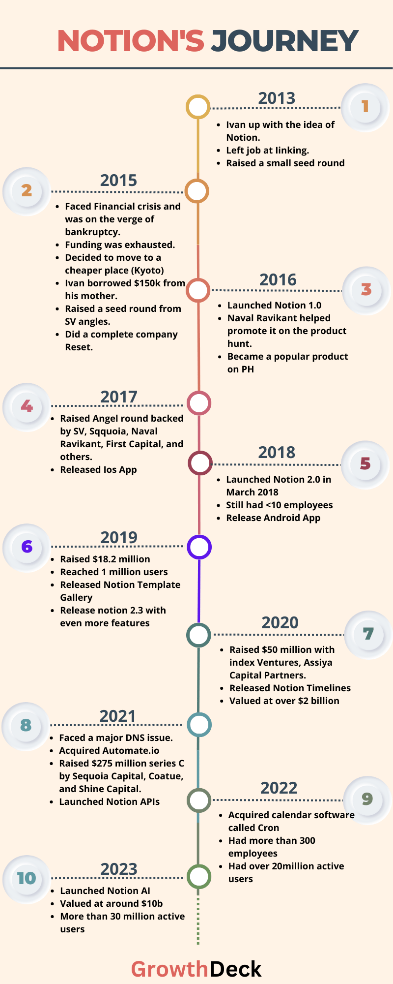 After coding for nearly 18 hours a day while living in Kyoto, they unveiled Notion 1.0 in March 2016. From that point onward, their trajectory has been consistently upward.